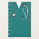 Un único planificador de temática médica con exfoliaciones hospitalarias creativas y estetoscopio. Para personalizar el texto de edición para añadir nombre.