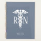 Manténgase organizado con este planificador personalizado de enfermería azul Caduceus. Está diseñado con un fondo azul polvoriento en la parte delantera y trasera. El anverso tiene un símbolo blanco caduceus y "RN" en el centro. El nombre está escrito con letras flacas blancas en la parte inferior. HAGA CLIC EN PERSONALIZAR LA OPCIÓN PLANTILLA E INTRODUCIR EL NOMBRE.
