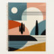Un paisaje abstracto de desierto con líneas y formas en tonos marrones, naranjas, turquesas, beige, marrón y negro.