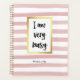 Este elegante planificador dice "Estoy muy ocupado" en la moderna tipografía negra, en un falso marco dorado. El fondo está decorado con una acuarela de rayas rosas y blancas, y puedes personalizarlo con tu nombre.