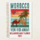 Plan your vacation highlights in this stylish Group Family Vacation Planner with CUSTOMIZABLE TEXT. The design features colorful vintage sunset with camels and trees. In the top left hand corner, there is the Moroccan flag in the shape of a heart. The text is bold grunge sans serif typography, with family name and year. The Latin phrase says VENI VIDI AMAVI, which means I CAME, I SAW, I LOVED. ALL TEXT IS CUSTOMIZABLE so you can make this totally PERSONALIZED for your family or group. Matching gifts and Marrakech version available.