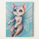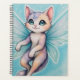 This planner features a cute, detailed illustration of a fantasy kitten with pastel-colored fur and large, iridescent teal butterfly wings, floating against a light blue, starry background.