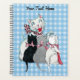 Este planificador es una manta azul y blanca con una feliz gata madre blanca sentada con sus tres lindos gatitos blancos, negros y grises vestidos con arcos alrededor de su cuello. Personalizar el texto en la parte delantera con la plantilla.