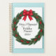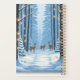 Impresionante diseño de Navidad con una hermosa cubierta frontal decorada con una corona festividad adornada con bayas, bayas y un arco rojo, y una tranquila escena boscosa de nieve con ciervos y luces brillantes en la cubierta trasera. Perfecto para las vacaciones.