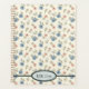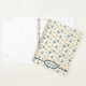 En este planificador, unas flores negras, rosadas y azules, caen sobre un fondo crema.