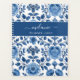 Este bohemiano planner floral de algodón francés azul y blanco Damask cuenta con un nombre de guión personalizado y un hermoso diseño floral.