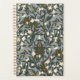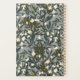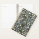 Seamless pattern wallpaper featuring dark green foliage and small white blossoms against a dusty blue-gray background.