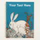 Este planificador es azul con un conejo blanco esponjoso sentado en el suelo en plantas altas con hojas y flores naranjas. Personalizar el texto con la plantilla.