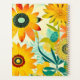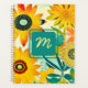 Cuaderno de flores folclóricas amarillas y turquesas. Agregar iniciales en el área personalizada.