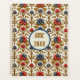 Flores rojas y azules con acentos dorados en un diseño barroco crean un hermoso y elegante planificador. Un círculo bordeado de azul, con un centro de marfil pálido, sostiene tus iniciales o monograma con el año.