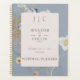 El diseño de este planificador de bodas presenta un delicado campo y flores y helechos silvestres sobre un polvoriento fondo azul. Un monograma completa el aspecto sencillo pero elegante de esta invitación. Este planificador es parte de la suite rustica de tarjetas Monograma Dusty Blue Boda creada por Simply Farmhouse Press.