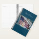 Esta imagen norteamericana, de bandera, está resaltada en contra, fuegos artificiales reventando, en una colorida exhibición de bengalas rojas, blancas, azules y amarillas, en un cielo nublado y crepúsculo, de pizarra azul.