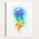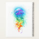 Grandes medusas de azulejo brillantes, de dibujos artísticos, con largos tentáculos en blanco, pintadas con fondo multicolor de acuarela. Mariscas arcoiris.