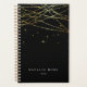 El planificador de la moda con una columna dorada presenta letras blancas clásicas sobre un fondo negro rico entrecruzado con cadenas de falsas luces de cuerda de Relieve metalizado dorado. Personalice con dos líneas de texto personalizado, haciendo de este planificador una elección perfecta para empresas, citas o tareas diarias.