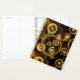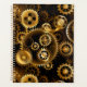 Sin soldadura, metalizado, latón, engranajes dorados sobre un fondo oscuro y oxidado. Estilo Steampunk.