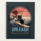 Planner de gatos ondulante: gato negro surfeando sobre una ola, con el sol en tonos rosa y naranja, creando una escena caprichosa y surrealista.