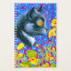 Planner con la pintura animal de Louis Wain Cat in Sea of Flowers (1860-1939). Un gato blanco y negro con ojos dorados huele a flores amarillas. En el fondo morado hay flores azules. Un regalo maravilloso para los amantes de los gatos y el arte inglés.