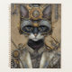 Gato vintage victoriano de vapor punk gris y blanco con casco de características mecánicas de bronce y acero.