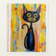 Obra de arte original de un caprichoso gato negro sobre fondo de collage amarillo de Janna Doucette