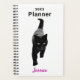 Foto de un lindo gato negro que camina por la nieve blanca, que puedes personalizar fácilmente con tu propio nombre o texto.