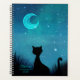 gato negro mira la luna creciente en un hermoso cielo estrellado, con colores negro y turquesa, y un nombre personalizado, año. si te gustan más cambios o solicitudes de diseño, contácteme en twoteendesign@gmail.com
