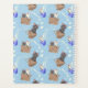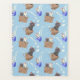 Gatos en tazas y cajas y gotas de leche en el fondo azul