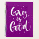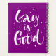 Esta obra de arte incluye texto de guión con la frase "Gay is Good".