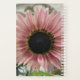 Este impresionante planificador presenta una hermosa fotografía de un girasol rosa pálido. El girasol es de color rosa natural y los pétalos tienen un anillo exterior rosa pálido y un anillo interior rosado más oscuro. El medio donde están las semillas es negro. Esta fotografía fue tomada en un jardín.