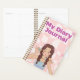 A cute and stylish planner cover featuring a cartoon girl with braided hair and a pink checkered background perfect for personal journaling with flair