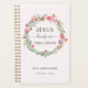 Este diseño presenta una corona acuarela con flores rosadas y violetas y hojas verdes. Con las palabras que Jesús me quiere, esto lo sé.