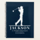 Este planificador de golf personalizado es la manera perfecta de seguir el ritmo de su programa de golf durante el año. Este diseño cuenta con un balancín de golf en un club y tiene dos campos de texto que se pueden usar para personalizarlo, quizás con un nombre y un club de golf.