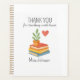 Ayuda a tu profesor favorito a organizarse con estilo con este hermoso planificador de gracias! Con un cálido diseño acuarela de libros apilados, una planta en maceta y un corazón rojo, junto con el reflexivo mensaje "Gracias por enseñar con corazón", este planificador es práctico y significativo a la vez. Perfecto para la planificación de clases, listas de tareas pendientes, reuniones o periodismo diario, este planificador de personalizables hace un excelente regalo para las celebraciones de la Semana de Apreciación del Profesor, de regreso a la escuela o de fin de año. Añade el nombre del profesor o un mensaje corto para hacerlo realmente personal. Características del producto: Disponible en múltiples tamaños y diseños (semanales, mensuales o diarios) Enlace de espiral sólida y cubierta duradera Diseño de portada de color completo con texto de personalizable Interior incluye calendarios, notas y secciones de planificación Ideal para profesores, tutores, mentores o personal escolar Un regalo funcional e inspirador que los profesores usarán cada día - una combinación perfecta de propósito y apreciación.