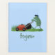 Una extraña rana verde cortando el césped al estilo personalizado.