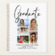 Elegante Script Multi Photo Graduation Graduate Planner incluye cinco de tus fotos favoritas de tu graduado universitario o de secundaria con el rápido y moderno guión de la caligrafía negra "Graduado". Sencillo, elegante y elegante. Creado por ©Evco Studio www.zazzle.com/store/evcostudio