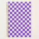 A purple and white checkerboard pattern with alternating squares, creating a balanced design. The vibrant colors give a playful, energetic feel.