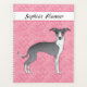 El original ilustracion personalizado de Destei de un lindo perro de raza gris italiano de color azul y blanco con un color de fondo rosado con un patrón de corazones de diferentes tamaños. También hay un área de texto personalizable para el texto personalizado.