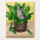 Adorable gato gris dibujado a mano sentado en una olla de pipa.