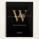 Planificador personalizado femenino y moderno con monograma negro y dorado, nombre inicial, firma con letra script, personalizado y moderno para el año 2023 o cualquier otro año. Este diseño presenta tu nombre en un bonito estilo de letra a mano con tipografía de cola de florituras (o caligrafía), monograma inicial, nombre completo (o apellido) y año en dorado y blanco sobre fondo negro. Fácil de personalizar. Un regalo femenino ideal para cumpleaños, despedida de soltera, día de la madre, boda, negocio, cumpleaños de 16 años, regreso a clases, graduación, trabajo profesional y para cualquier persona que ame las cosas minimalistas y limpias.