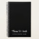 Moderno profesional monogramado de planner negro con tu nombre en un elegante guión blanco. Añadir un título en una tipografía blanca simple.