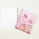Un lindo oso dulce Gummi rojo horneando en una cocina de corazón rosa.
