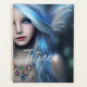 Arte digital que representa un hermoso hadas mágico etéreo con ojos y cabello azul brillante. Agregar un nombre en el área de personalización. generativeart