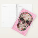El cráneo rosa está lleno de hermosas margaritas y rosas. El fondo es un bonito efecto giratorio rosa.