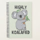 Altamente Koalafied - Altamente Calificado. Un lindo dibujo gráfico gris personalizado de Koala con un juego de palabras de un oso koala. El diseño de animales salvajes divertidos y dulces. Bebé salvaje australiano en un árbol de eucalipto con hojas de goma