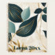 Las hojas abstractas de color verde con acentos dorados sobre un fondo blanco roto crean un hermoso planificador que le encantará usar.
