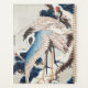This work is a classic Japanese Ukiyo-e woodblock print, often titled "Cranes on a Snow-covered Pine Tree," created by the esteemed artist Katsushika Hokusai (1760-1849) around 1834. The artwork features two elegant red-crowned cranes perched amidst snow-laden pine branches, a composition rich in cultural symbolism. Both the cranes and pine trees represent longevity and good fortune in Japanese tradition, and the piece was likely created to celebrate the New Year. The style is a masterful blend of detailed birds and impressionistic, dabs of snow, capturing a serene winter scene.