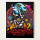 Arte vectorial original de un hombre astronauta que sostiene el planeta tierra.