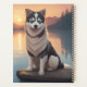 Husky siberiano sentado junto a un lago al atardecer. Rompecabezas, planificadores, cuadernos, adornos, baldosas, fundas para teléfonos más con este diseño en mis tiendas. Agrega esta imagen a otros productos. Agrega tu propio texto también. Muchos animales en mi tienda.