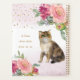 Un bonito gato rodeado de delicadas flores. ¡El regalo perfecto! Purpurina de oro simulado.