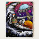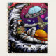 Arte vectorial original de un astronauta que tiene queso de luna y pasa una tajada a un alien. Creado en vector.