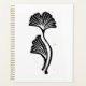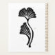 Impresión de linóleo minimalista de una hoja de gingko vertical en blanco y negro.